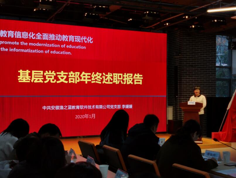 高新创业园党委副书记、纪委书记杨晓玲逐一点评书记述职情况。杨晓玲书记充分肯定我司党支部工作,并表示,“渔之蓝作为高新区小微企业,取得现在的发展成果,值得大家借鉴学习。支部以党建推进企业发展,以信息化推动职业教育现代化,做大做强企业经营的同时开展形式多样的公益活动。”