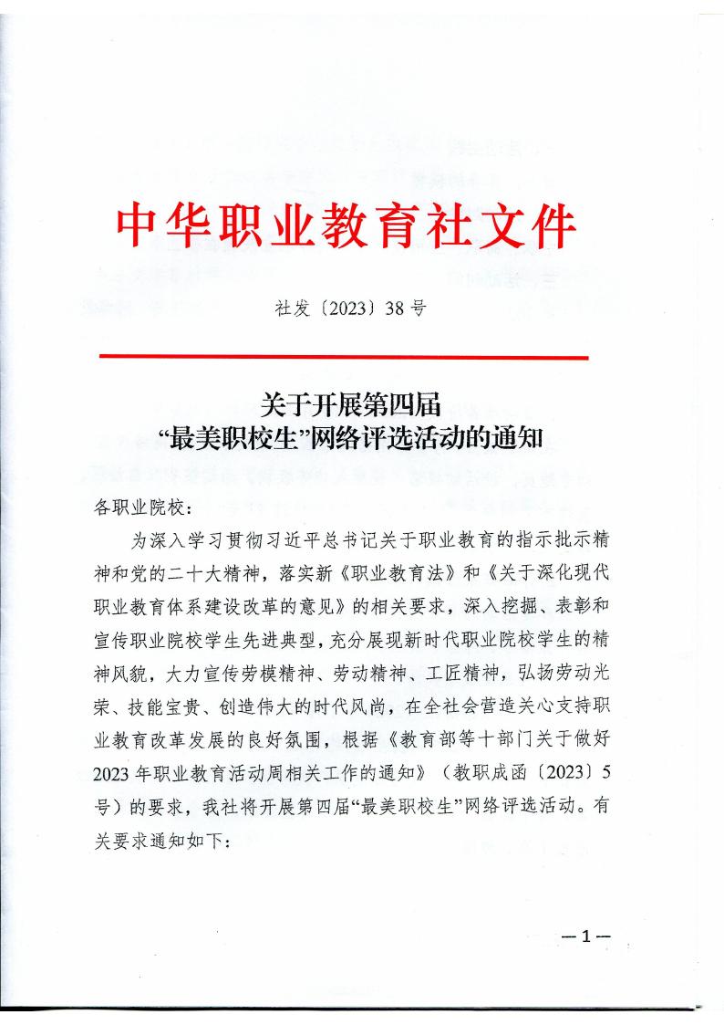 关于开展中华职业教育社第四届“最美职校生”网络评选活动的通知